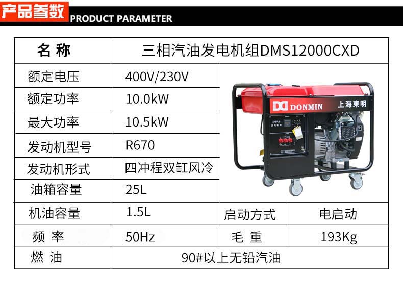 * 表示必填采购:10KW三相工程汽油发电机组 DMS12000CXD