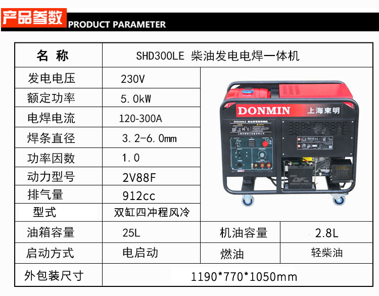 120-300A单相5KW柴油发电电焊一体两用机组SHD300LE,支持不同规格订制服务