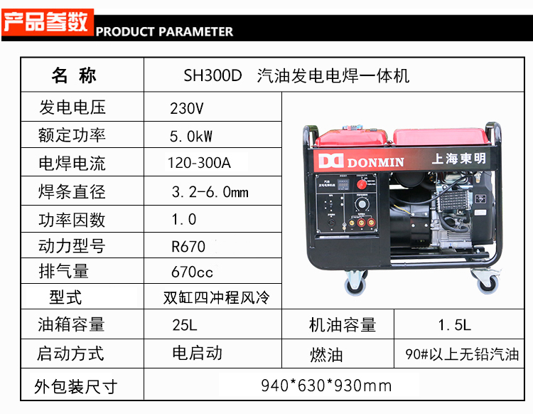 120-300A单相 5KW双缸汽油发电电焊一体机SH300D