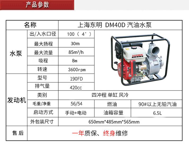 4寸 (100)汽油动力自吸抽水泵电动 DM40D