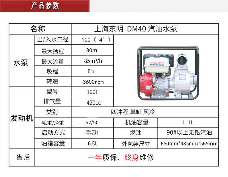 * 表示必填采购:4寸 (100)汽油动力自吸抽水泵 DM40