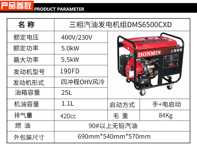 * 表示必填采购:5KW三相用汽油发电机DMS6500CXD