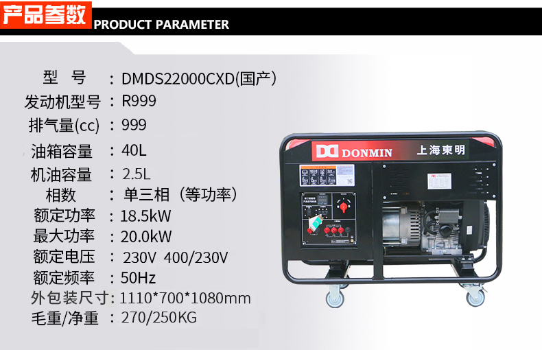* 表示必填采购:东明单三相20kw国产动力汽油发电机组DMDS22000CXD(国产)
