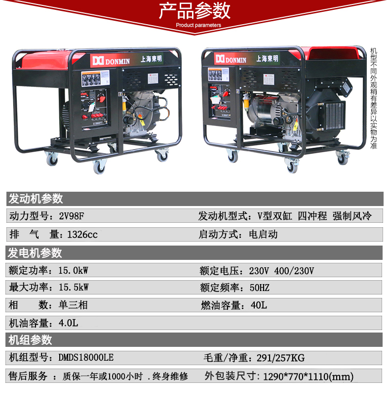 * 表示必填采购:单三相15千瓦柴油发电机组DMDS18000LE