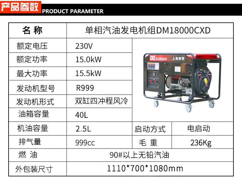 * 表示必填采购:单相15kw汽油发电机 DM18000CXD
