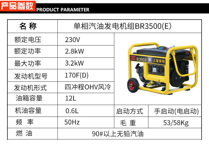 * 表示必填采购:单相3kW小型汽油发电机组 BR3500(E)