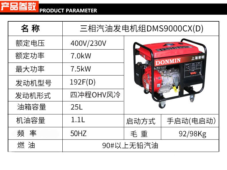 建筑施工三相7.5KW 汽油小型发电机组DMS9000CX DMS9000CXD