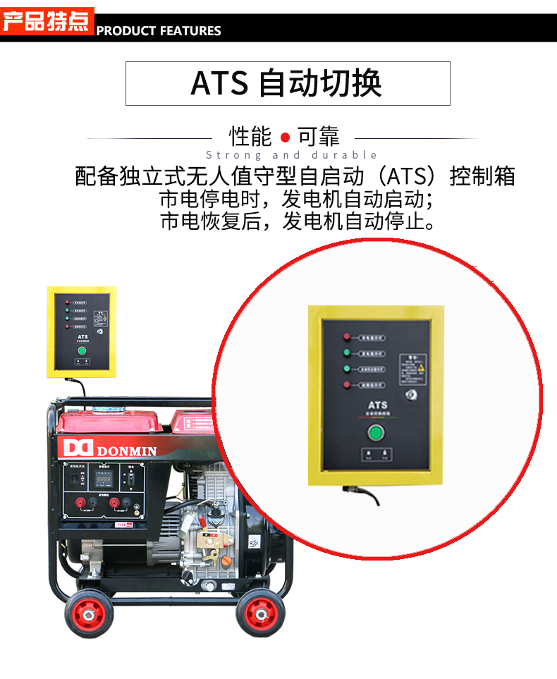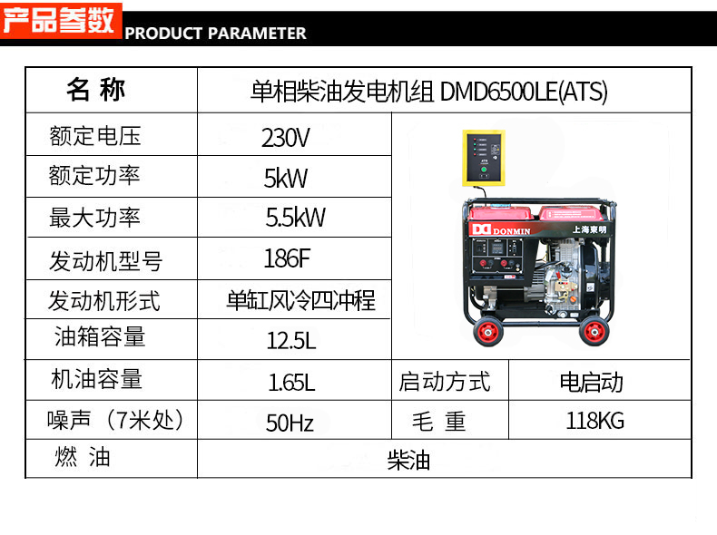 * 表示必填采购:冷链配套单相5kw无人值守ATS柴油发电机 DMD6500LE(ATS)