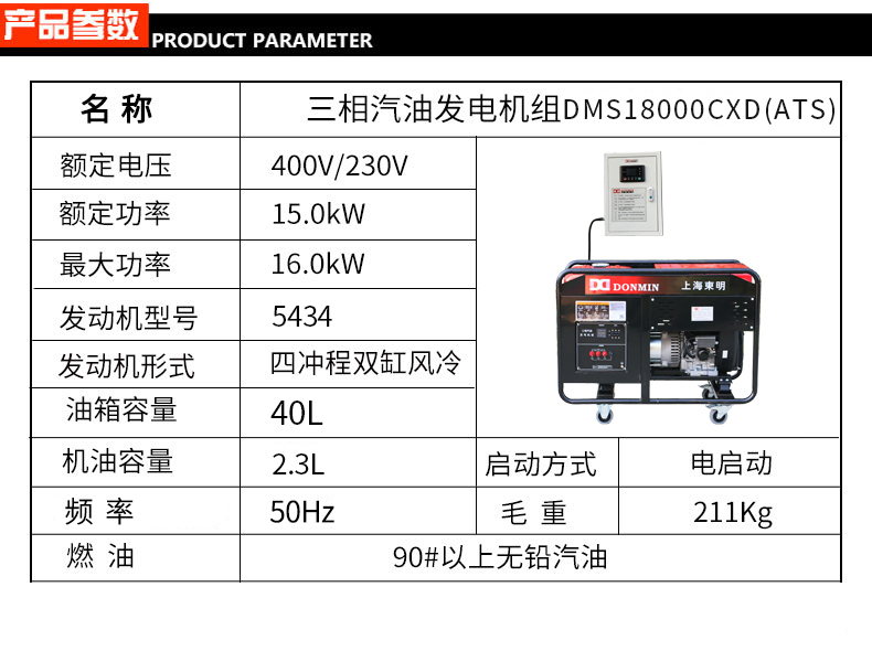 * 表示必填采购:冷链配套三相15kw无人值守汽油发电机 DMS18000CXD(ATS)