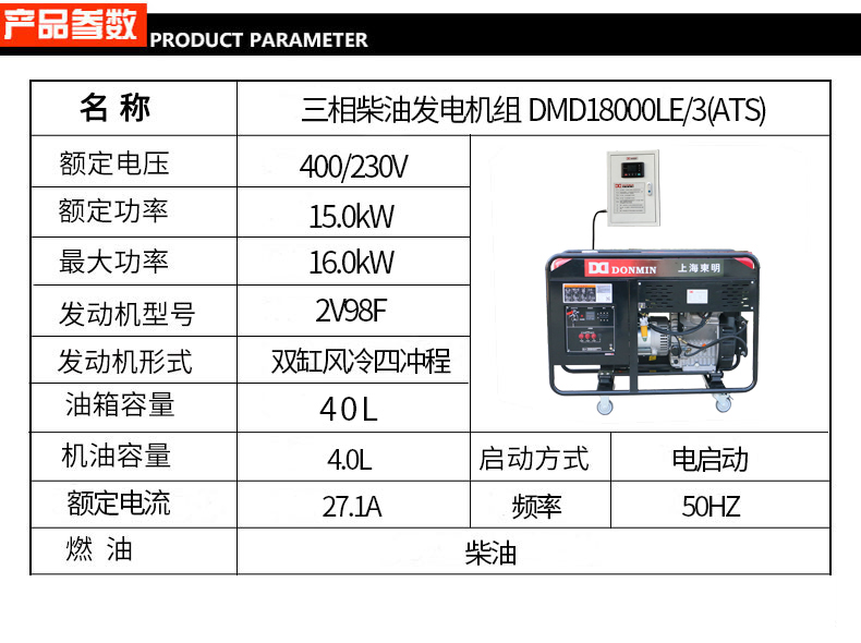 * 表示必填采购:冷链配套三相15kw无人值守ATS柴油发电机 DMD18000LE/3(ATS)
