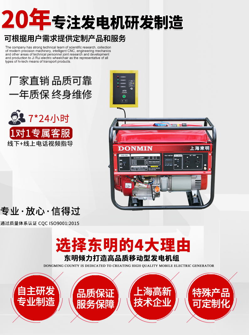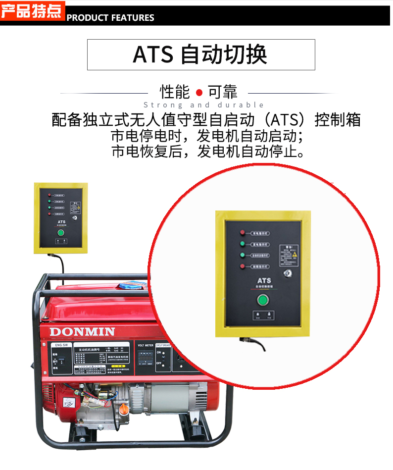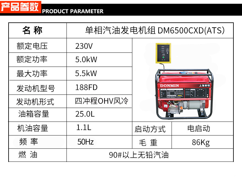 * 表示必填采购:冷链配套单相5kw无人值守ATS汽油发电机组 DM6500CXD(ATS)