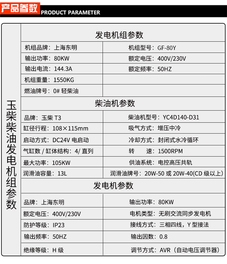 * 表示必填采购:上海东明玉柴开架式80kw大型柴油发电机组GF-80Y