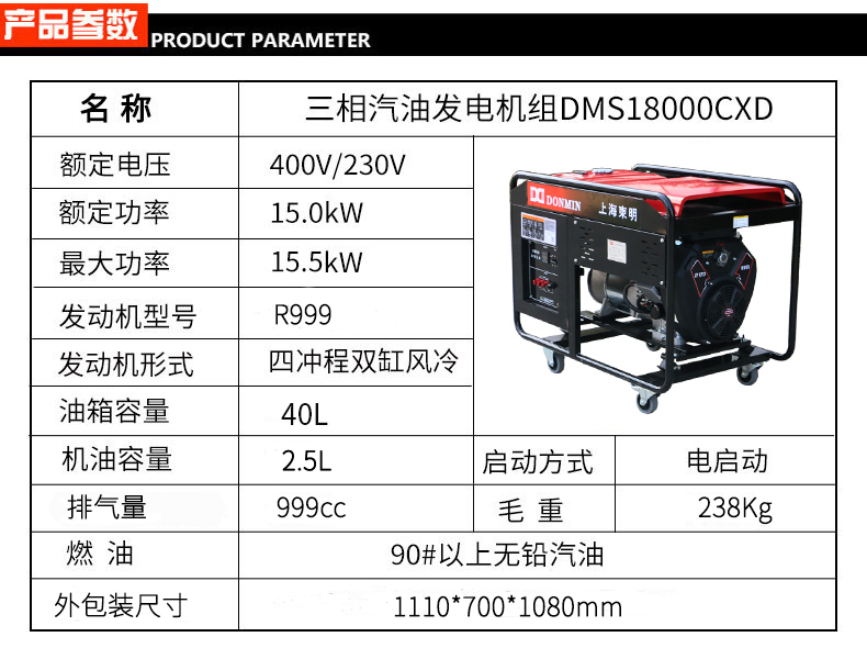 * 表示必填采购:三相 15kW小型汽油发电机组 DMS18000CXD