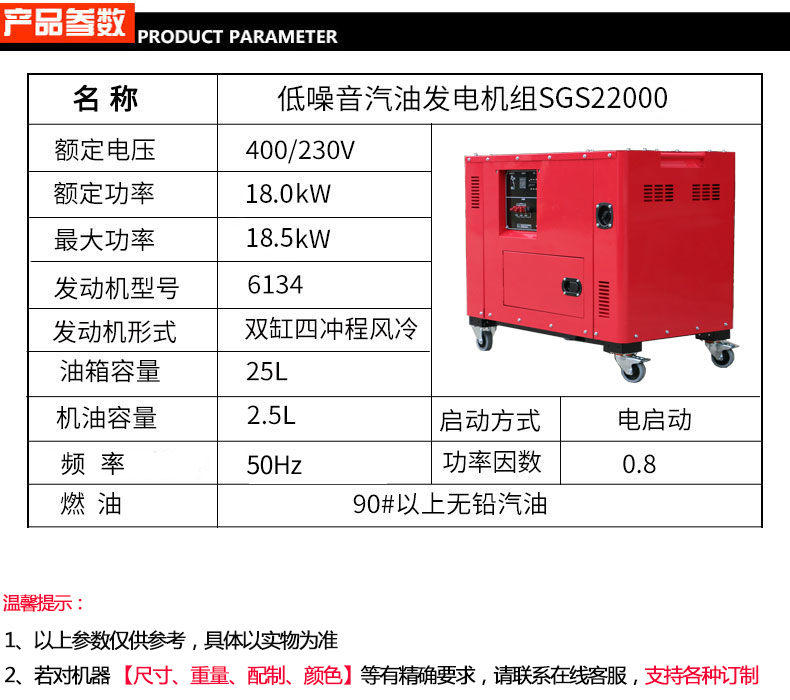 * 表示必填采购:三相20kW低噪音汽油发电机 SGS22000